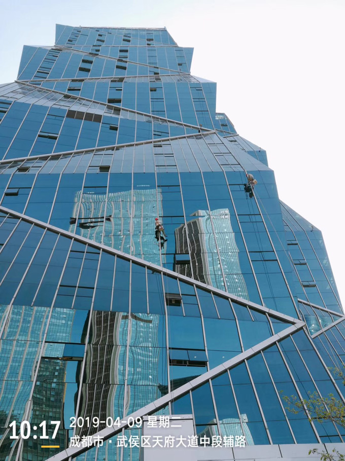 清潔項目特點:外墻玻璃、建筑比較有特色、歪曲轉(zhuǎn)角多、高空、服務(wù)對象結(jié)構(gòu)復(fù)雜